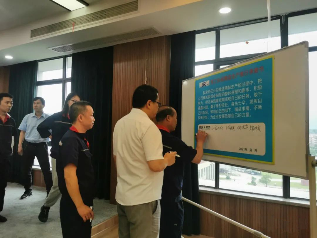 宣誓完畢后,精益生產(chǎn)小組紛紛簽名以表態(tài)度和決心。